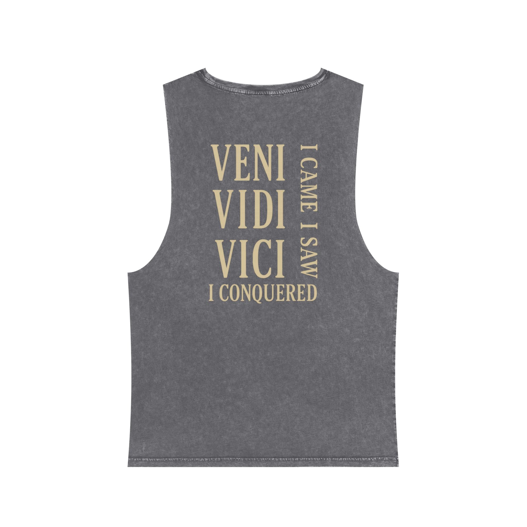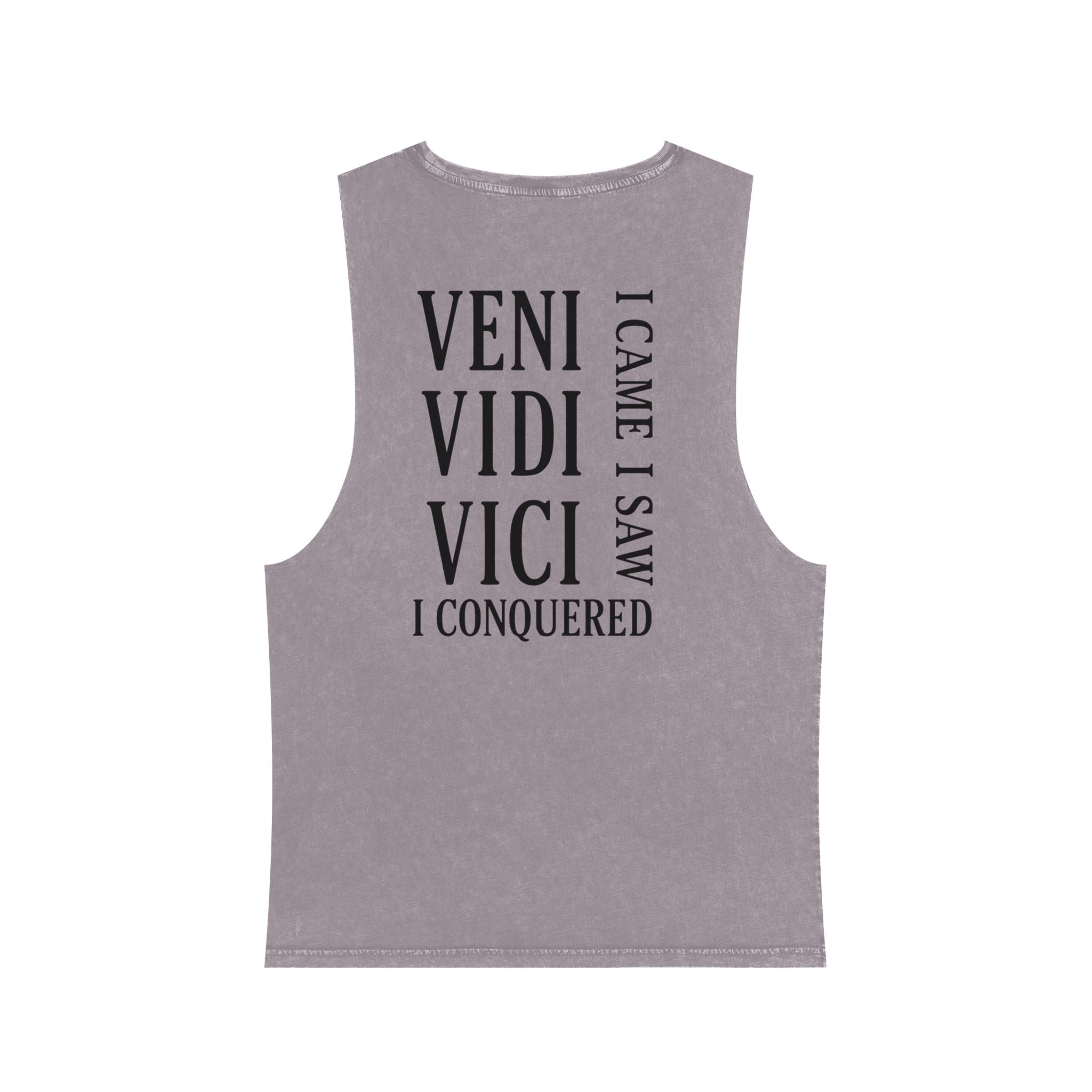 "I Came, I Saw, I Conquered" - Deadlyft or Die Vintage Stonewash Cutoff Sleeveless