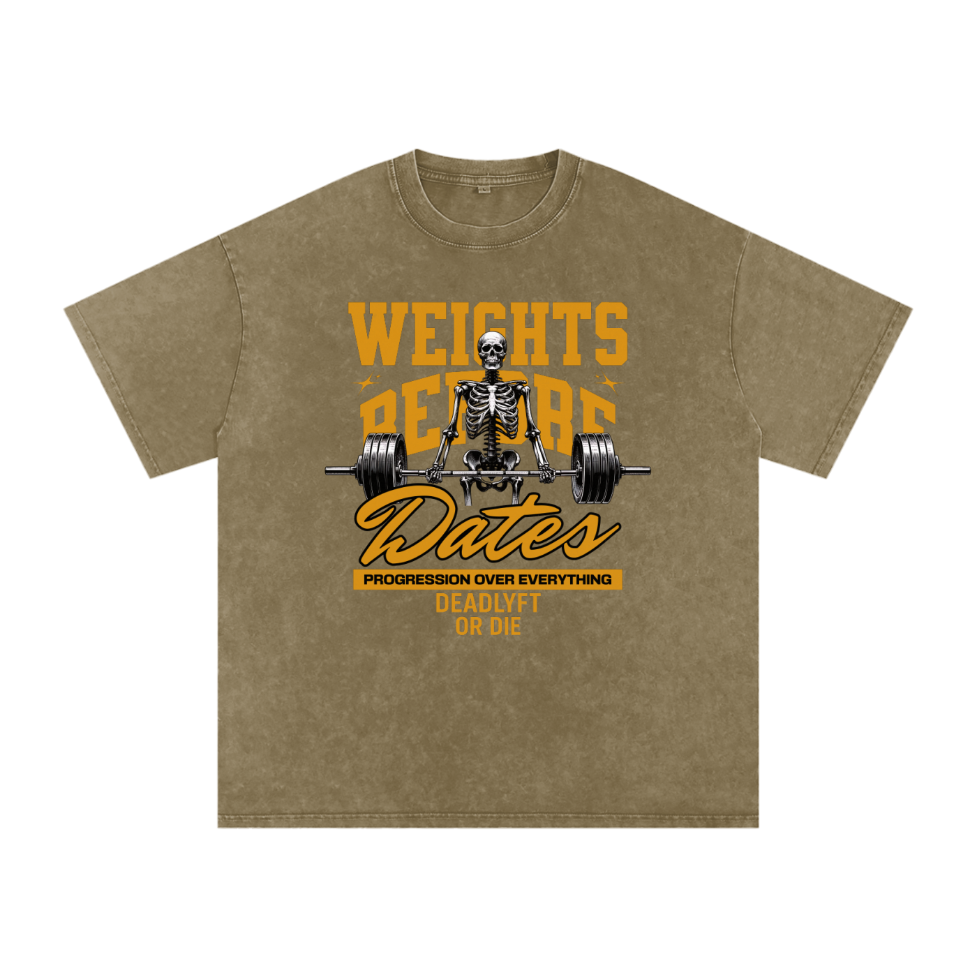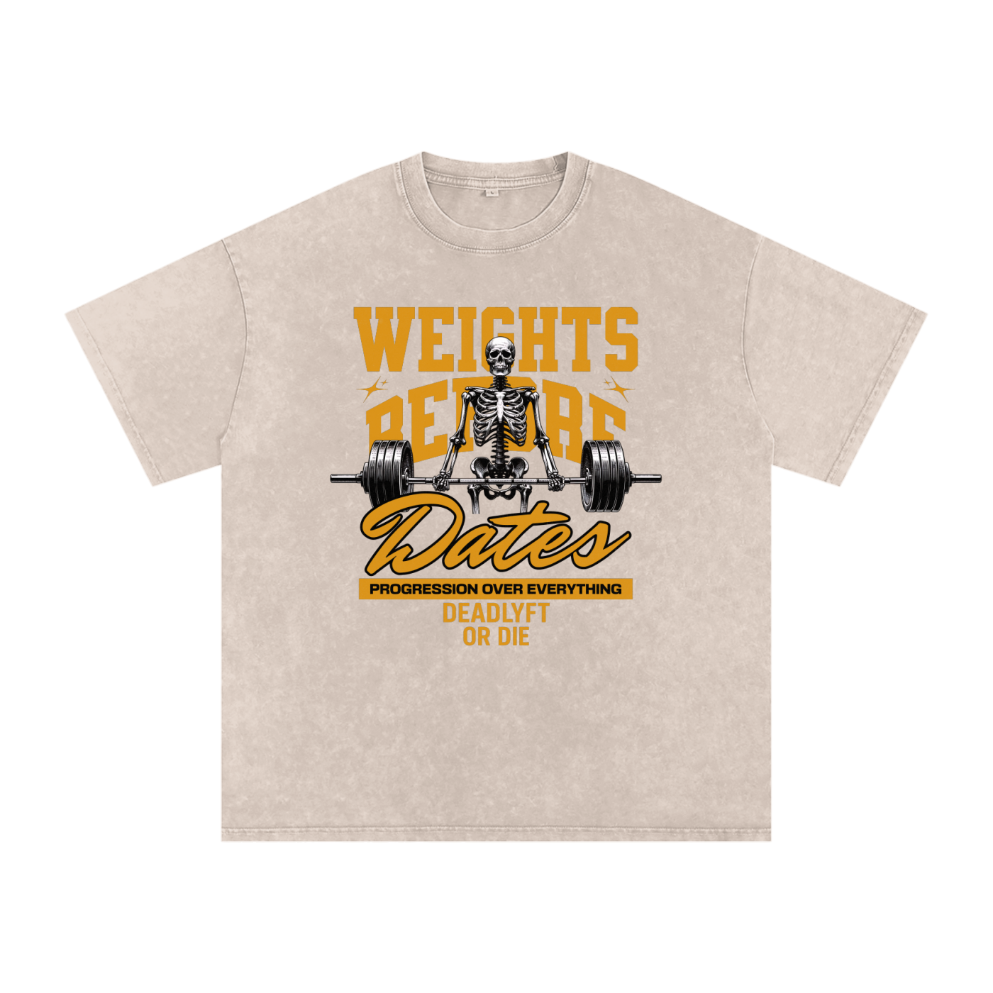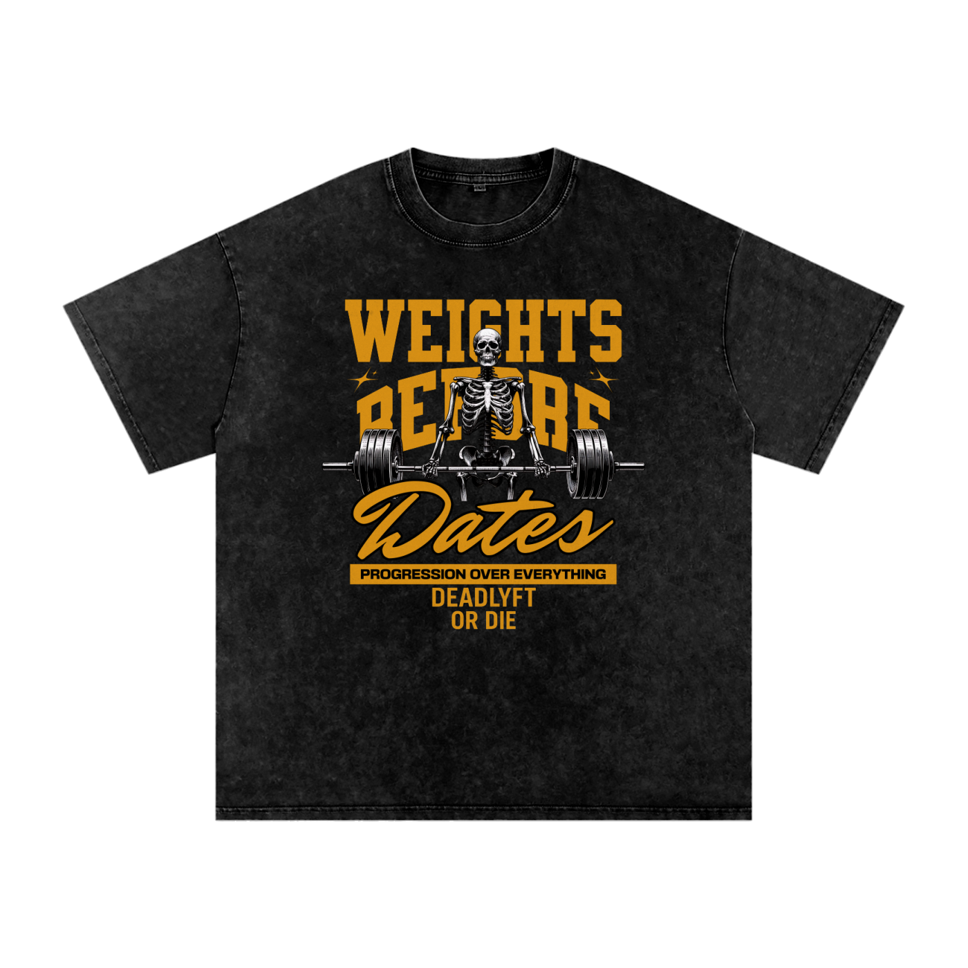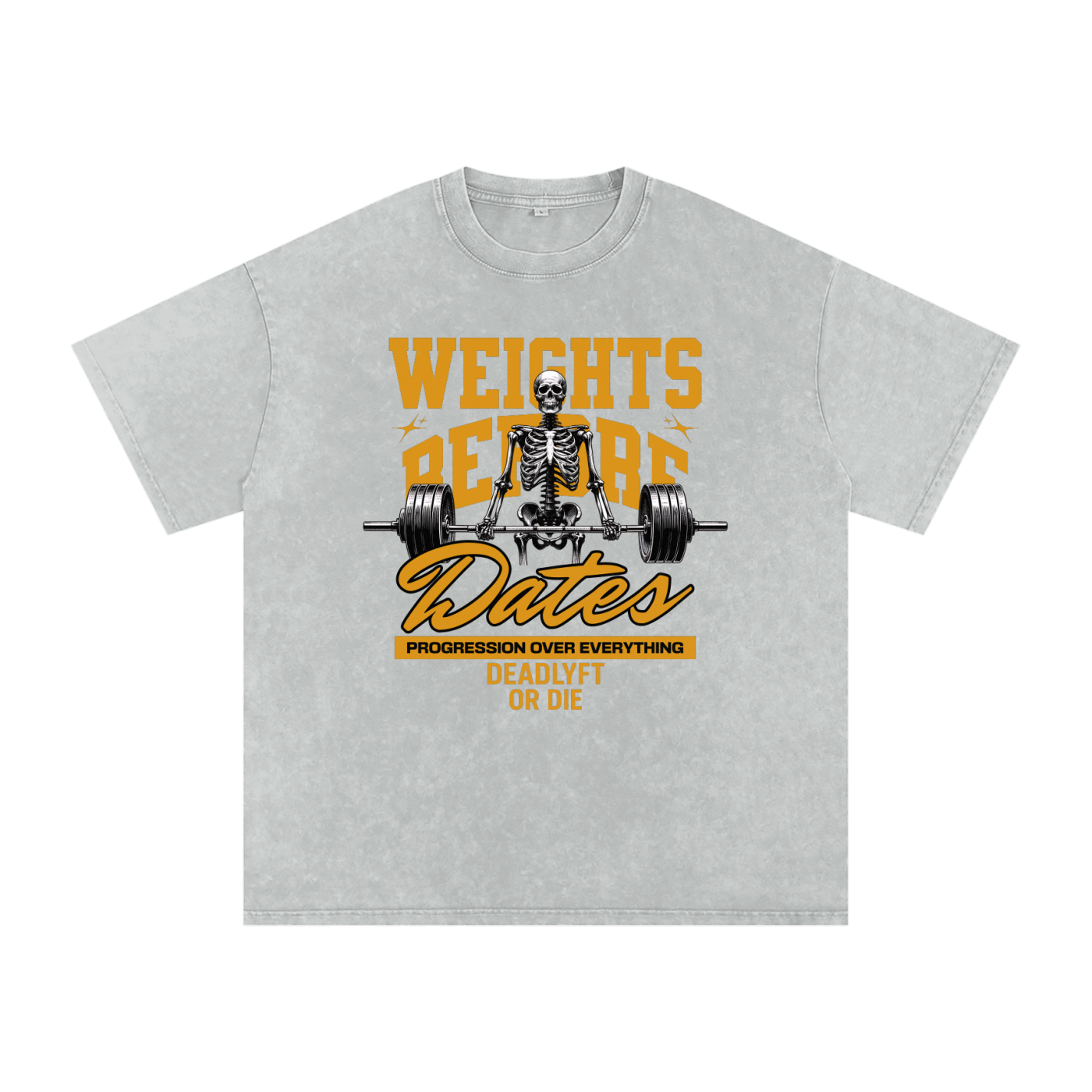 Weights Before Dates - Deadlyft or Die Unisex Stonewash Oversized Tee